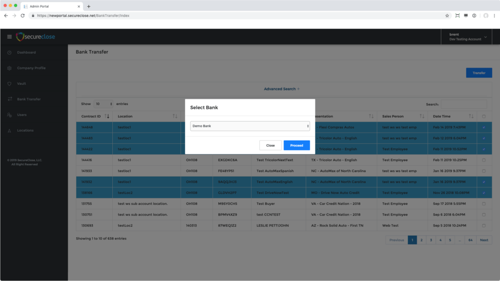 1. Go to the SecureClose Admin Portal